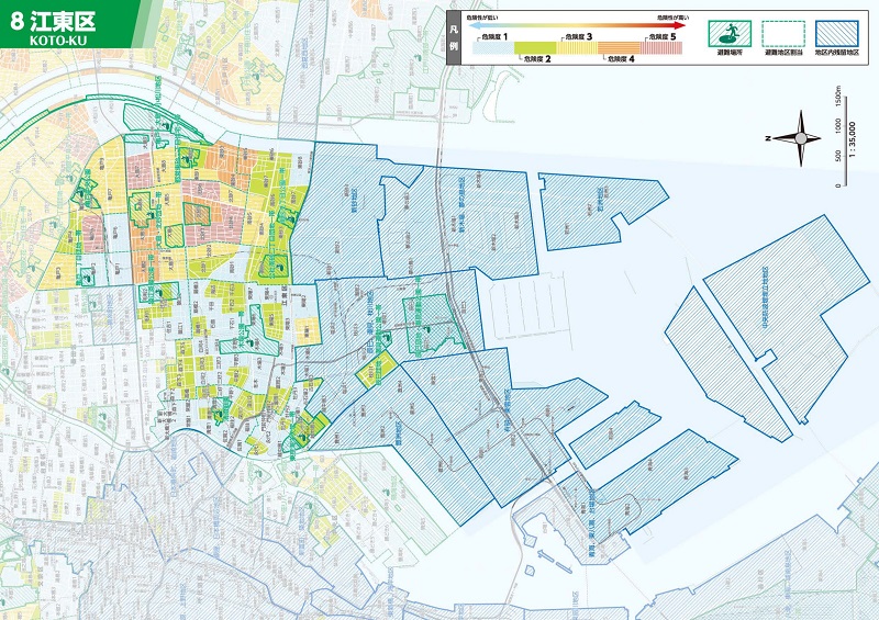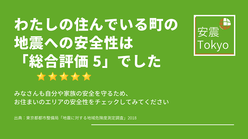 江東区東陽3丁目の地震時の安全性に関する総合評価は、5段階中の5で、都内全体で上位42.34%です。