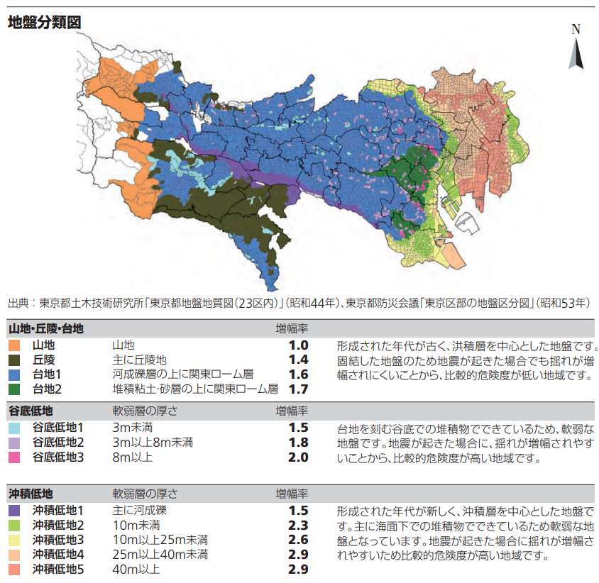 地震発生時には、延焼などの火災のリスクは低く、建物が倒壊するリスクが低くなく、災害時の避難や救助の活動が非常にしやすい地域です。 地盤は沖積低地で揺れが増幅されやすく、比較的危険度が高くなっています。